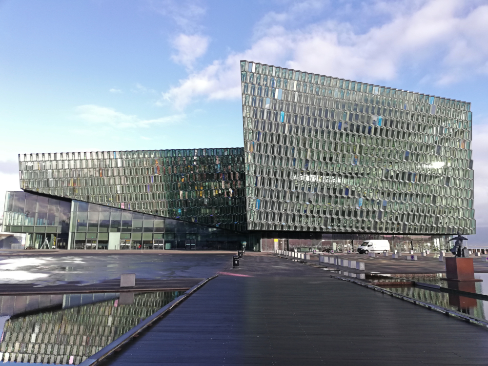 Un edificio realizado por el despacho de arquitectos Henning Larsen, Artec Consultants y Olafur Eliasson. Su construcción se paró durante la fuerte crisis que sufrió la isla en el 2008-2009, finalmente sus puertas abrieron en el año 2011 y ganó el prestigioso premio de arquitectura Mies Van der Rohe en el 2013.